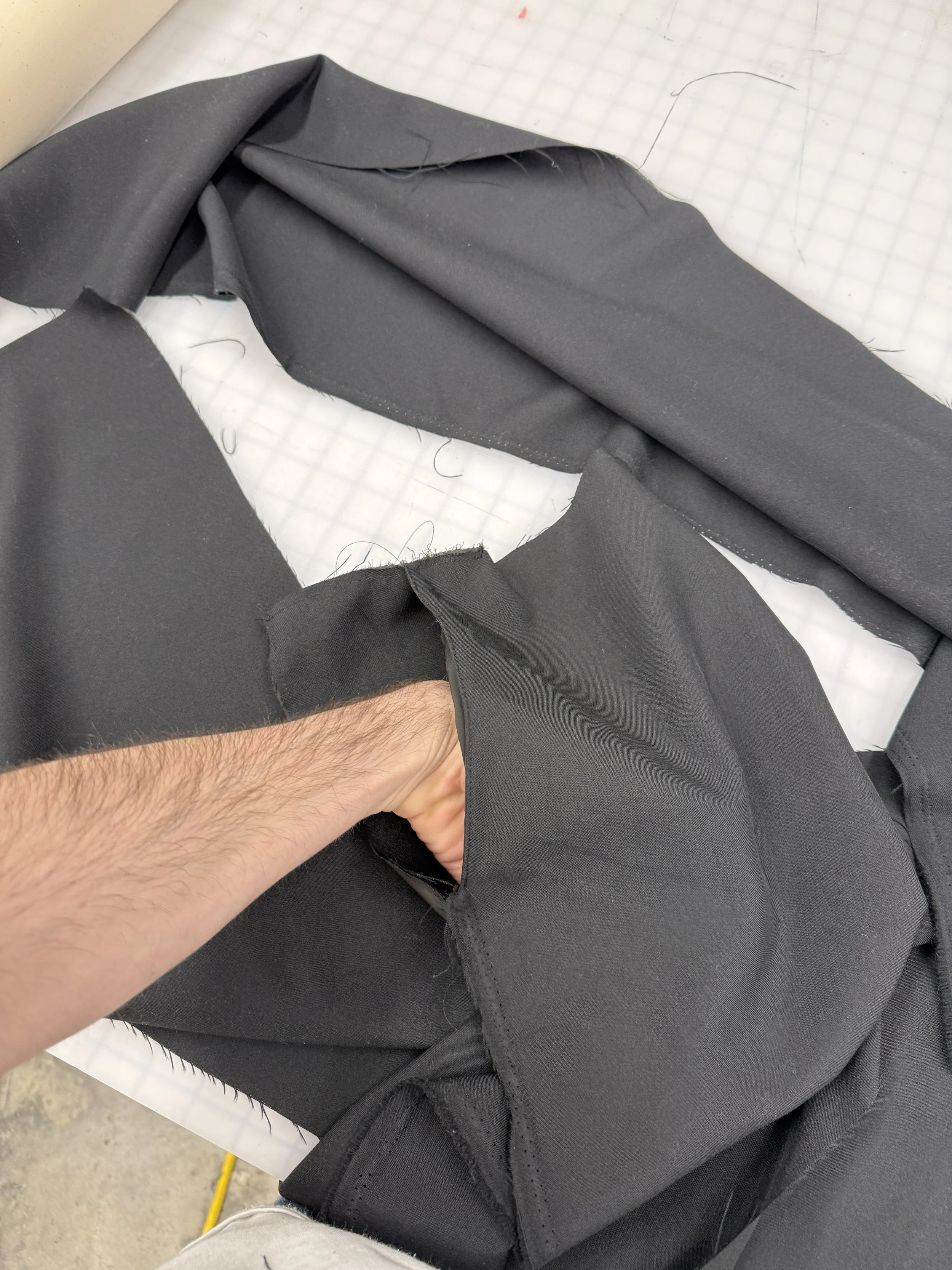 These pants were my first finished garment I've done, which was for my Sophomore Year Studio course. It was an individual study, so I took the opportunity to learn how to work off my measurements and pattern from absolute scratch. We had the opportunity to work on the project in 3 iterations, and this piece is iteration 3 out of 3. I included my previous iterations below in the portfolio. During this process, I learned a lot about how different fabrics work on the sewing machine, how different fabric drapes, and how important small increments are to patterning.