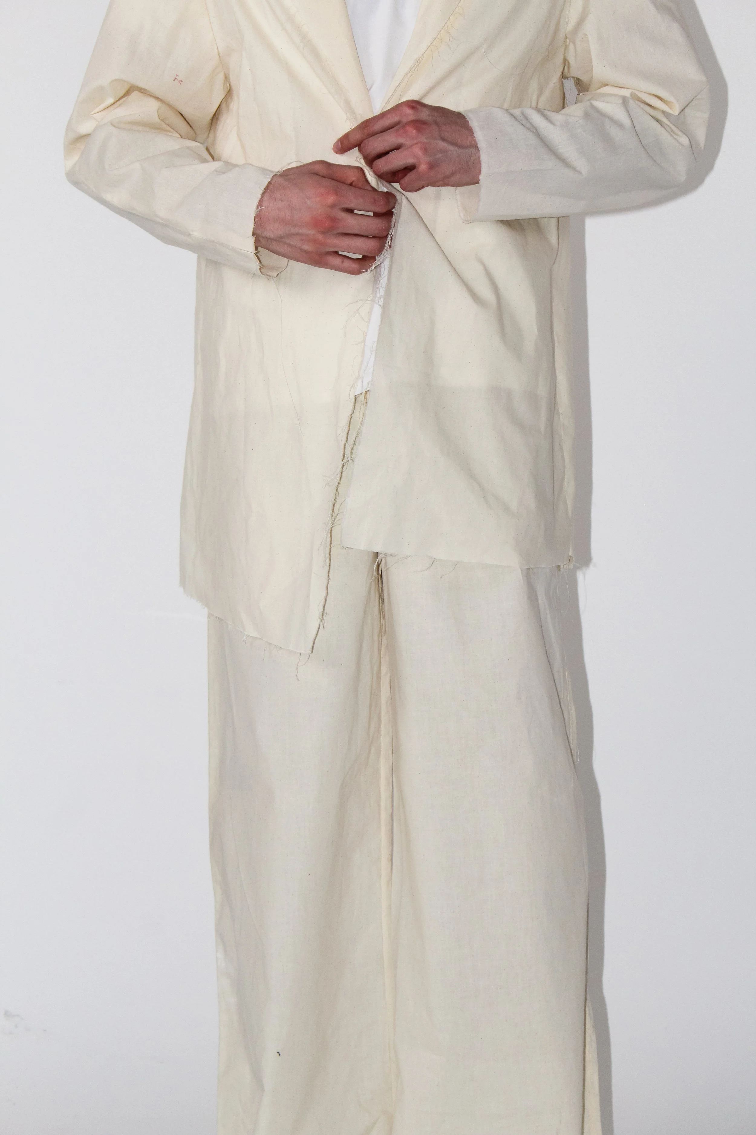 This full toile is iteration 1 and 2, the complete look, which was designing pants and suit jacket from my Sophomore Year Studio course. Prior to making “the pants” (previous project), I learned how to create a suit jacket and pants from scratch with my measurements.