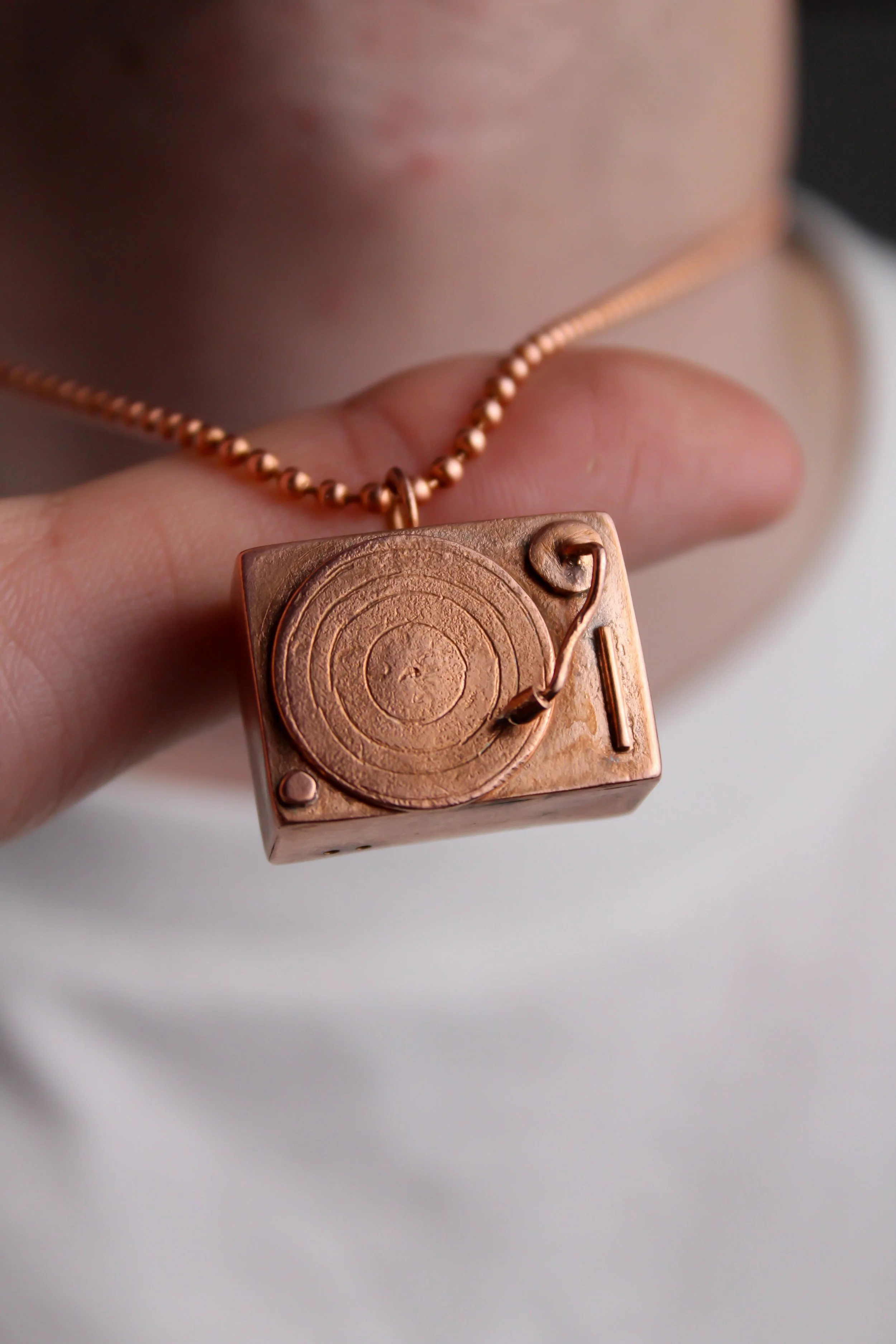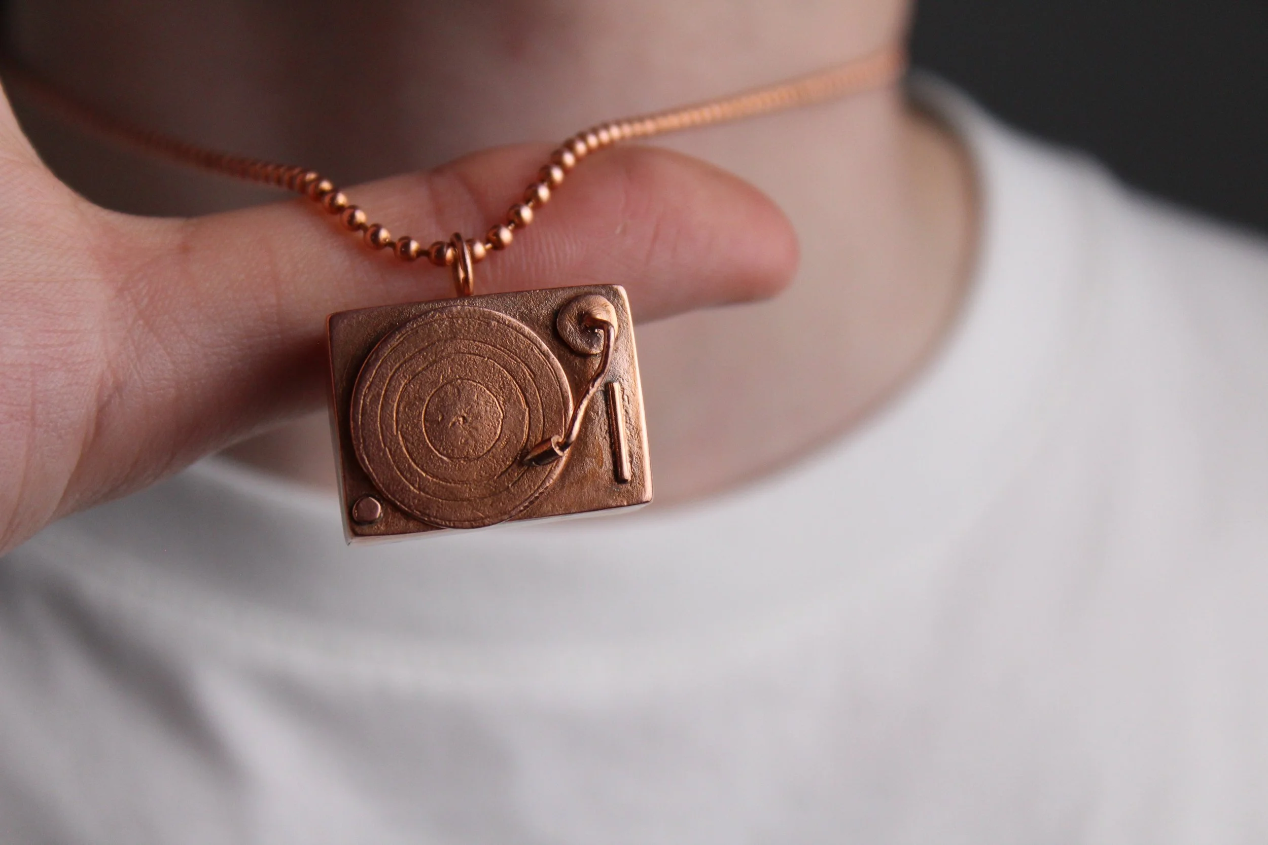 For my Intro to Jewelry Metals & Making Class final project, we were tasked by our professor Susan Hoge to create a pendant with significant meaning from music, or a piece that is inspired from our previous works in other classes. I chose my inspiration from one of the founders of Techno, Juan Atkins, and how he plays all his sets live (electronic) and on vinyl.